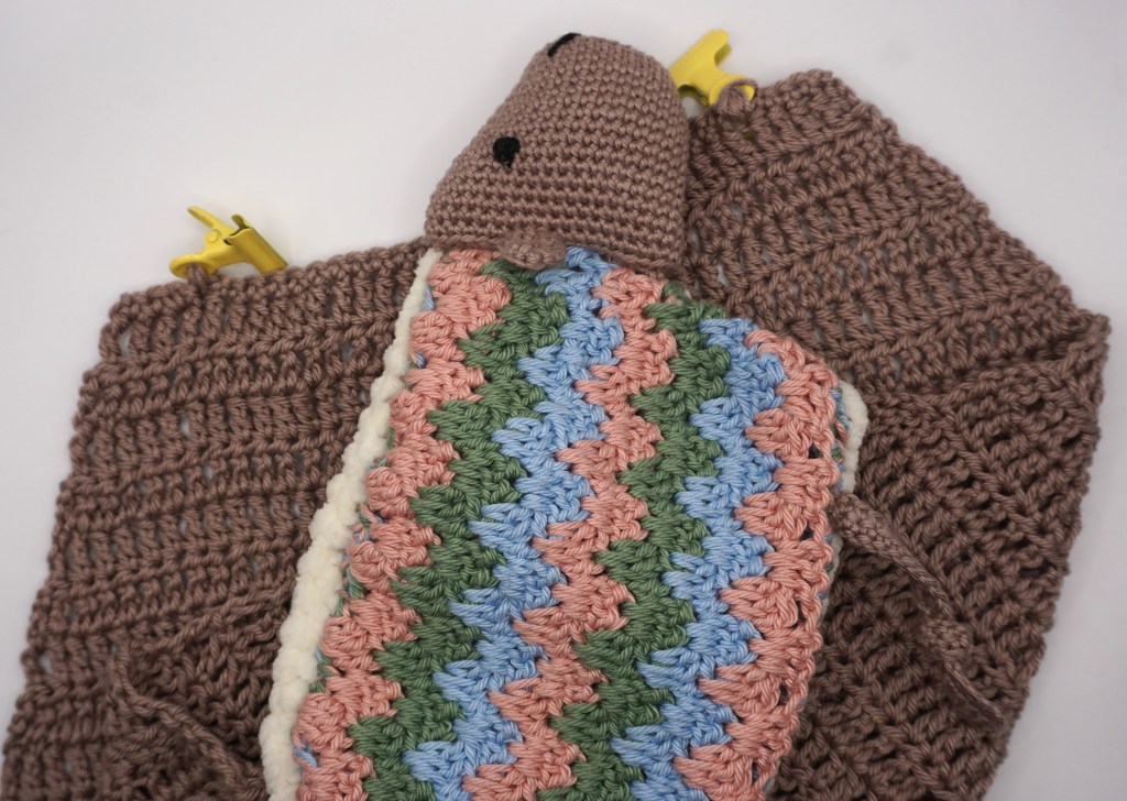The blanket is safely crocheted to the sheep and in addition is crocheted in htr – people are not seeing through but you don’t have to worry that your baby gets trouble breathing or that it is getting too hot under the blanket.